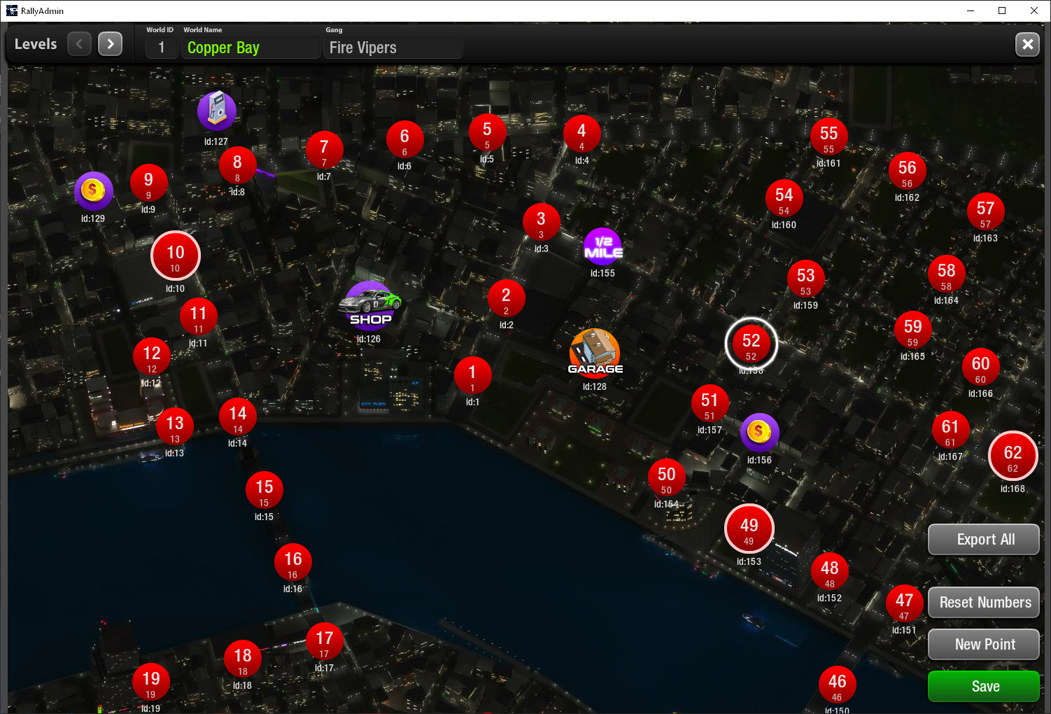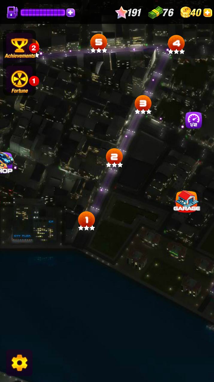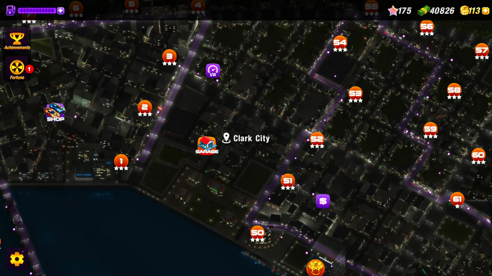 The map for 4 worlds/stages is fully complete, featuring great variety and detail that fits the game's overall style. Data for cars, opponents, gangs, and levels is ready up to world 6. The map is currently progression-based, but a live map is planned for the future.